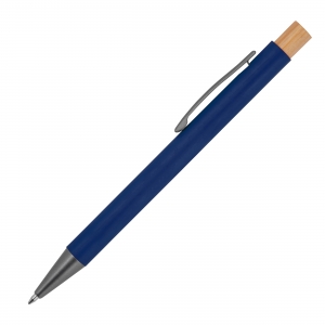 Artikel-Nr: MCM1517844Kugelschreiber aus recyceltem Aluminium mit Bambusdrücker, Metallclip und blau schreibender Großraummine. Ihre Werbung wird rechts vom Clip graviert.