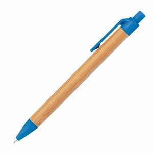 Artikel-Nr: MCM1321104Druckkugelschreiber aus Bambus mit farbigen Applikationen aus Weizenstroh und blau schreibender Mine. Ihre Werbung wird rechts vom Clip gedruckt.