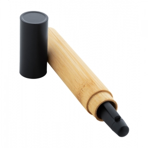 Artikel-Nr: AND808110-10Eleganter, schwarzer Drehkugelschreiber aus Metall mit Bambusschaft und schwarzen Elementen. Einzeln im Etui aus Bambus mit schwarzer Abdeckung. Blauschreibend.