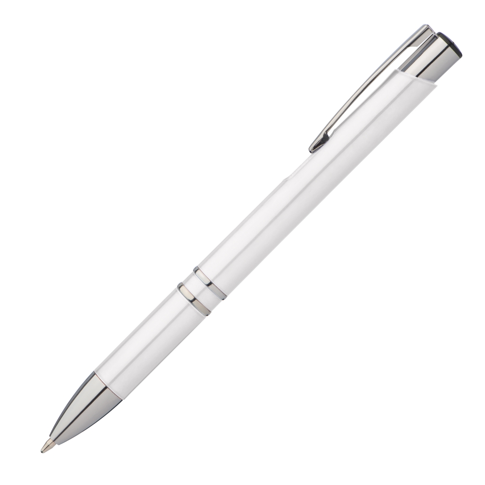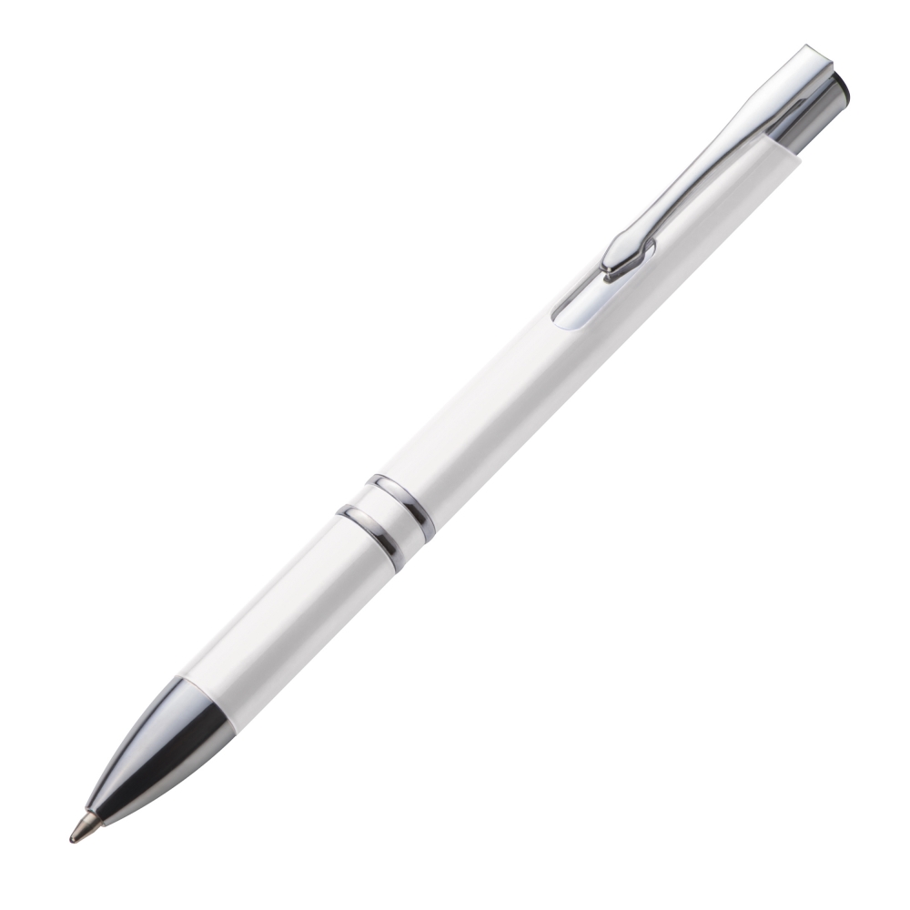 Artikel-Nr: EAG046106Kugelschreiber mit blauschreibender Großraummine und silbernen Applikationen. Ihre Werbung drucken wir rechts vom Clip. Wir empfehlen einen Druck in silber.