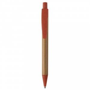 Artikel-Nr: ART87284N0026Kugelschreiber aus Bambus mit Clip, Drücker und Spitze aus Weizenstroh und einer blau schreibenden X20-Kunststoffmine.