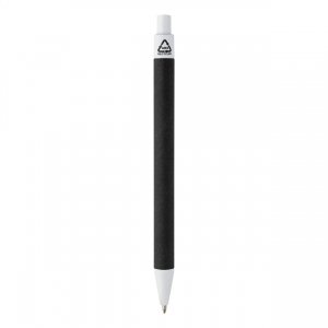 Artikel-Nr: AND800802-01Kugelschreiber aus Recyclingpapier mit schwarzem Schaft und farbigen Elementen aus recyceltem ABS-Kunststoff. Blauschreibend.