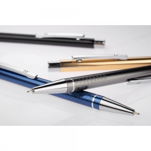 Artikel-Nr: ARD19728-15Der Kugelschreiber BONITO ist ein eleganter Metallkugelschreiber in Metallfarben mit Chromverzierung. Der Kugelschreiberkörper aus hochwertigem Aluminium ist mit einem silbernen Ring und Streifen mit einer leicht rauen Textur verziert. Der Stift ist mit einer schwarzen 0,7mm Halbgelmine ausgestattet.