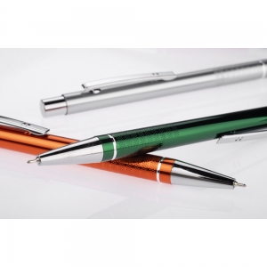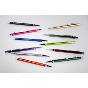 Artikel-Nr: ARD19728-05Der Kugelschreiber BONITO ist ein eleganter Metallkugelschreiber in Metallfarben mit Chromverzierung. Der Kugelschreiberkörper aus hochwertigem Aluminium ist mit einem silbernen Ring und Streifen mit einer leicht rauen Textur verziert. Der Stift ist mit einer schwarzen 0,7mm Halbgelmine ausgestattet.