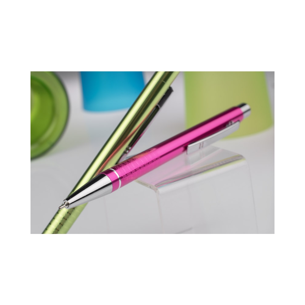 Artikel-Nr: ARD19728-21Der Kugelschreiber BONITO ist ein eleganter Metallkugelschreiber in Metallfarben mit Chromverzierung. Der Kugelschreiberkörper aus hochwertigem Aluminium ist mit einem silbernen Ring und Streifen mit einer leicht rauen Textur verziert. Der Stift ist mit einer schwarzen 0,7mm Halbgelmine ausgestattet.