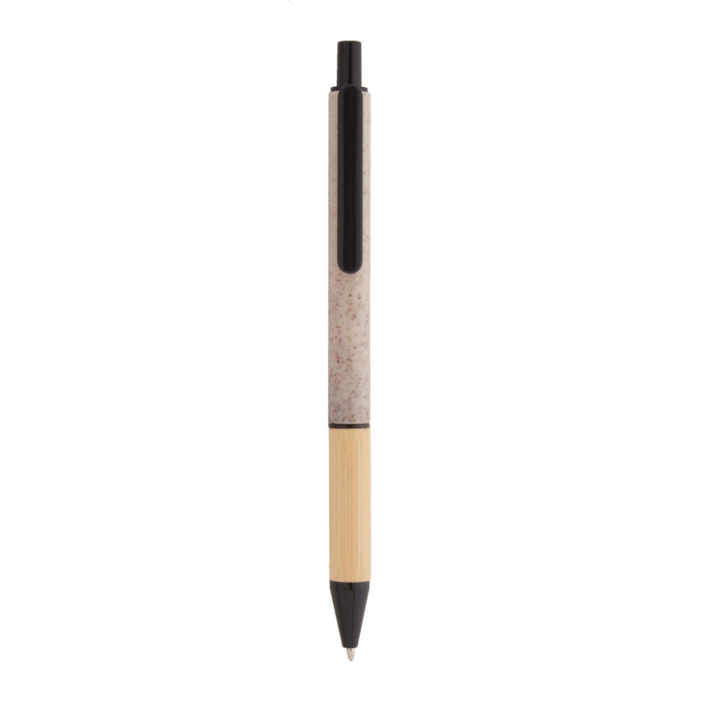 Artikel-Nr: AND800501-10Kugelschreiber aus ökologischem Weizenstrohkunststoff mit Bambus-Griffzone und farbigen Elementen, blauschreibend.