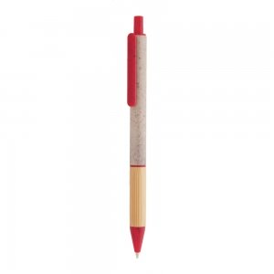 Artikel-Nr: AND800501-05Kugelschreiber aus ökologischem Weizenstrohkunststoff mit Bambus-Griffzone und farbigen Elementen, blauschreibend.