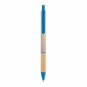 Artikel-Nr: AND800501-06Kugelschreiber aus ökologischem Weizenstrohkunststoff mit Bambus-Griffzone und farbigen Elementen, blauschreibend.