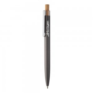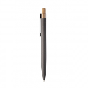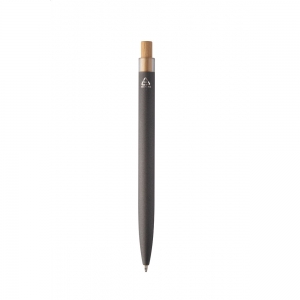 Artikel-Nr: AND808090-80Kugelschreiber aus recyceltem Aluminium mit gummierter Oberfläche, Bambusdrücker und Chromclip. Mit Spezialbeschichtung für eine Spiegellasergravur, blauerschreibend.