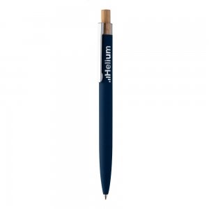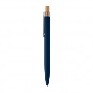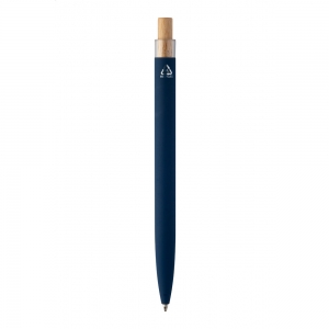 Artikel-Nr: AND808090-06Kugelschreiber aus recyceltem Aluminium mit gummierter Oberfläche, Bambusdrücker und Chromclip. Mit Spezialbeschichtung für eine Spiegellasergravur, blauerschreibend.