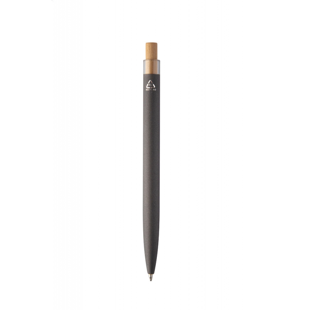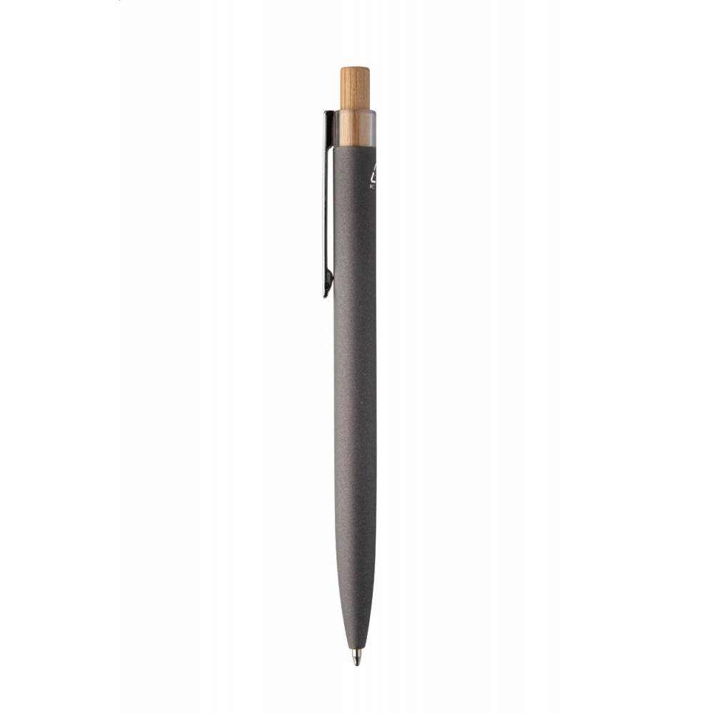 Artikel-Nr: AND808090-80Kugelschreiber aus recyceltem Aluminium mit gummierter Oberfläche, Bambusdrücker und Chromclip. Mit Spezialbeschichtung für eine Spiegellasergravur, blauerschreibend.