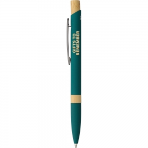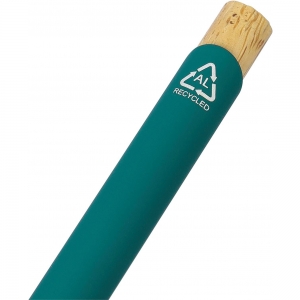 Artikel-Nr: GIV1207806005128Kugelschreiber aus recyceltem Aluminium mit gummierter Oberfläche, Drücker aus Bambus und Bambusring im Gehäuse. Mit Druckmechanik, 1,0 mm Mine und blauer Tinte mit einer Minenlänge von ca. 800 m. Mit graviertem Reycling-Logo.