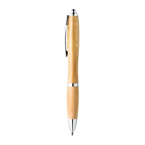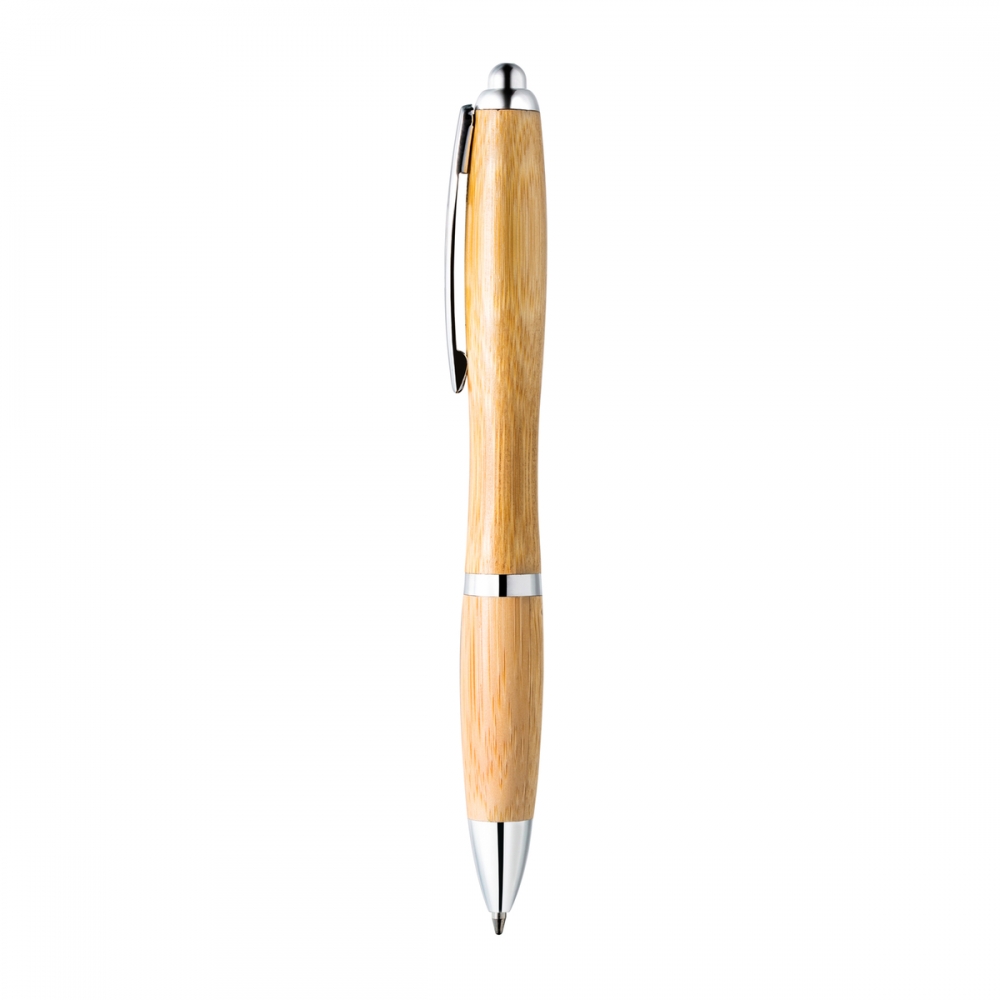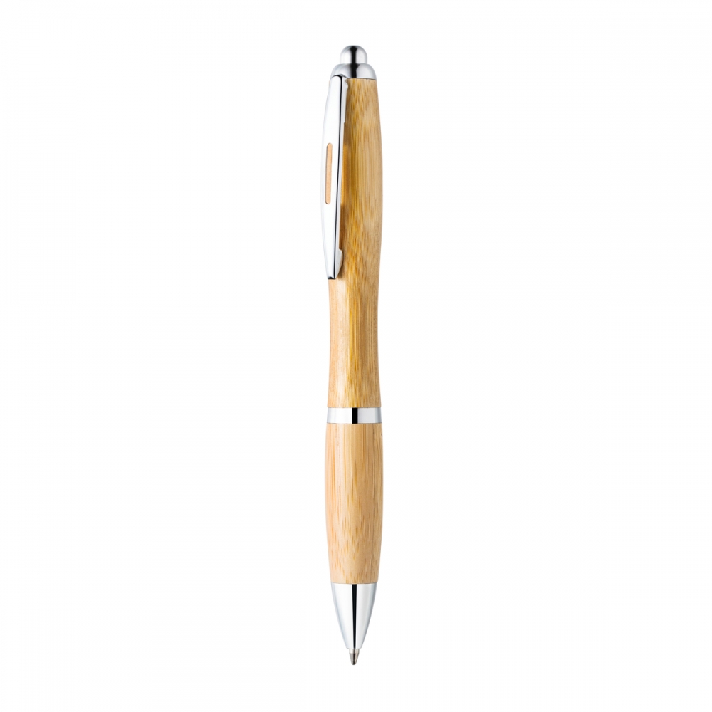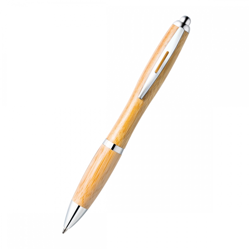 Artikel-Nr: RFS52412Ein schicker Kugelschreiber aus nachhaltigem Bambus, der sich durch seine bauchige Form von der Menge abhebt. Schöne silberfarbene Zierelemente, die das edle Design dieses Bambus Kugelschreibers unterstreichen.