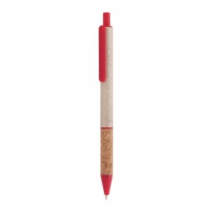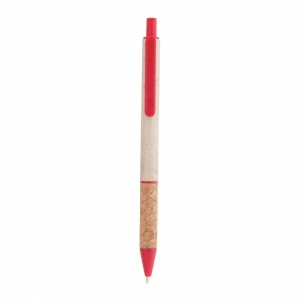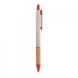Artikel-Nr: AND800500-05Kugelschreiber aus ökologischem Weizenstrohkunststoff mit Griffzone aus natürlichem Kork und farbigen Elementen, blauschreibend.