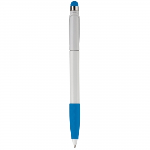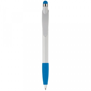 Artikel-Nr: ART87695N0112Kunststoffkugelschreiber mit Bogenclip, Gummimanschette und Stylus. Drehmechanik. Toppoint Design. Blauschreibend.