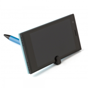 Artikel-Nr: GIV7984019Kugelschreiber aus Aluminium, mit Druckfunktion, schwarzen Akzenten, Smartphone-Halter und blauer Mine.