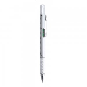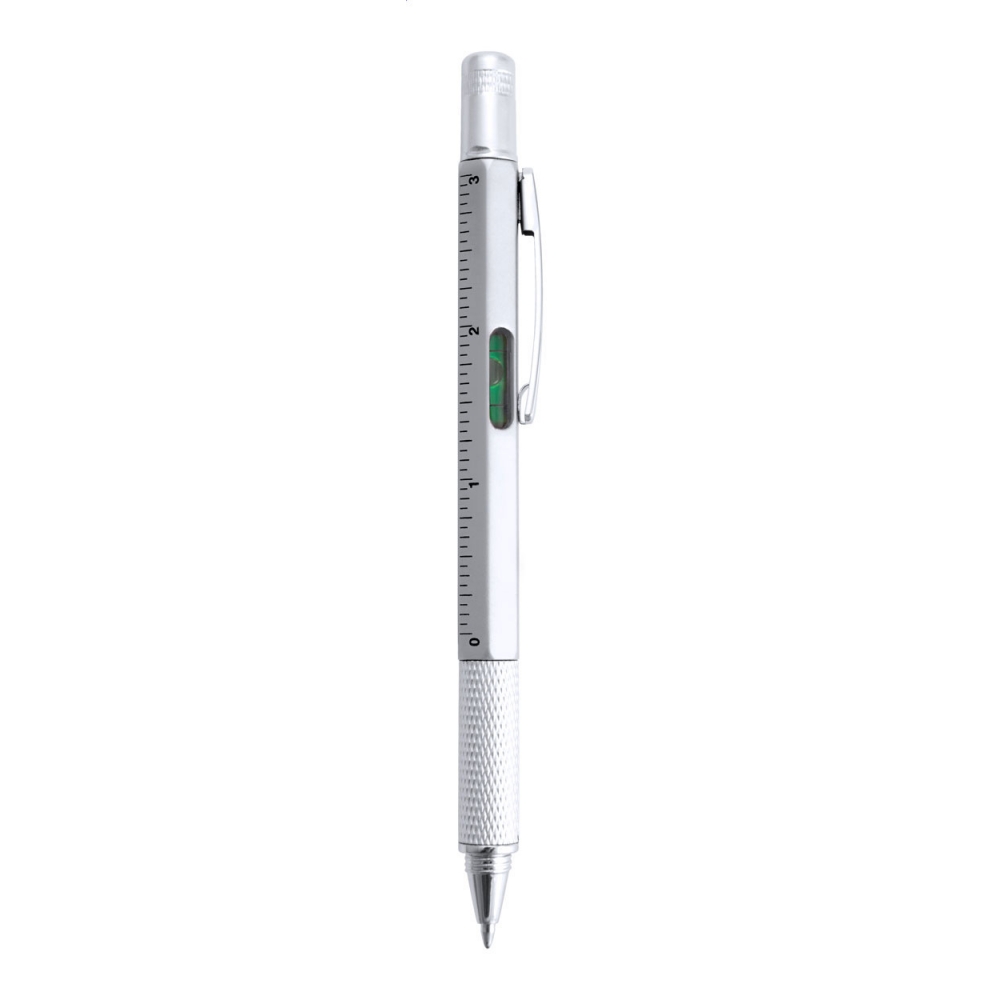 Artikel-Nr: AND741722-21Kunststoffkugelschreiber, blauschreibend, mit Metallclip. Funktionen: Schlitz- und Kreuzschraubendreher, Wasserwaage, und 7cm- / 3 Zoll-Linealen.