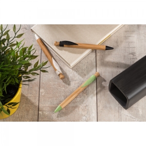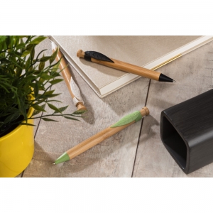 Artikel-Nr: ARD19649-13Der Kugelschreiber FOLL wurde für alle entwickelt, denen die Idee nahe steht, natürliche Ressourcen zu nutzen. Der Stiftkörper besteht aus natürlichem Bambus, und der Clip und die Spitze aus Stoff, der zu 40% aus natürlichem Stroh bestehen. Der blattförmige Clip verweist auch auf die Idee des Umweltschutzes. Automatischer Kugelschreiber Ersatzmine Typ X20 in blau.