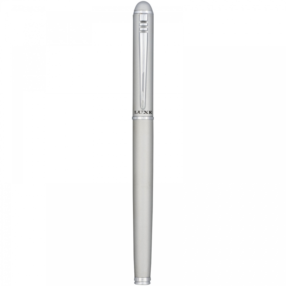 Artikel-Nr: CPO10713200Exklusiv gestaltetes Schreibset aus Kugelschreiber zum Drehen und Tintenroller mit Kappe. Erhältlich in glänzendem Schwarz, mattem Silber und mattem Blau. Verpackt in einer "LUXE"-Präsentschachtel (17 x 5,5 x 3 cm).