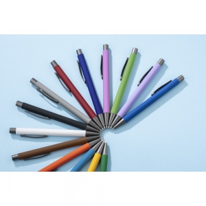 Artikel-Nr: ARD19617-07Der Kugelschreiber GOMA ist ein einfaches Design kombiniert mit einer sich angenehm anfüllenden Gummioberfläche. Das Ganze in leichten, matten Farben gehalten. Hergestellt aus Aluminium. Zierteile in Grafitfarbe. Mine in blau.