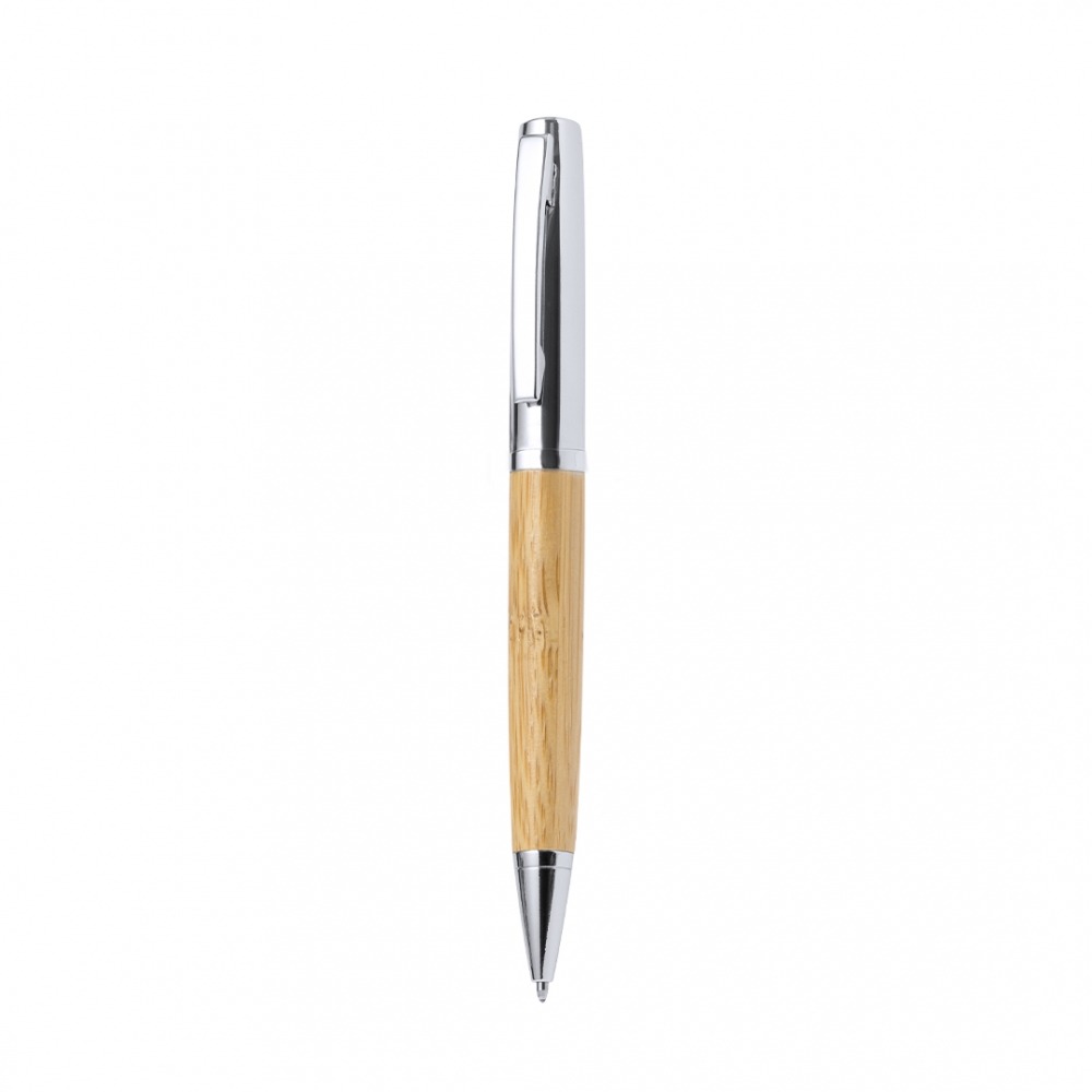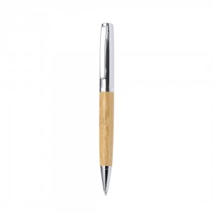 Artikel-Nr: KTO20665000000Eleganter Kugelschreiber aus Bambus und Metall mit Drehmechanismus. Robuster Metallschaft mit glänzender Oberfläche und Bambusgriff. Metallclip und blaue Tinte. Präsentiert in einem individuellen Bambusetui. Materialien wie Bambus fördern die Nutzung natürlicher Rohstoffe und reduzieren so den Schadstoffausstoß. Es stammt von einer äußerst widerstandsfähigen und vielseitigen Pflanze mit schnellem Wachstum und Regeneration, was es zu einer hervorragenden Alternative zur Verwendung von herkömmlichem Holz macht.