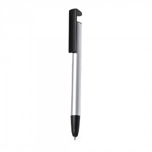 Artikel-Nr: KTO21118009000Kugelschreiber mit Druckknopfmechanik, hergestellt aus langlebigem Aluminium. Mit integriertem Handyhalter im Clip und glattem Schaft in verschiedenen Metallfarben. Mit blauer Tinte und einzeln verpackt in einer recycelten Tasche.