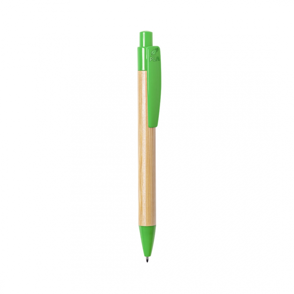 Artikel-Nr: KTO16771004000Nature Line Kugelschreiber mit Druckknopfmechanik. Kombination aus glänzendem Bambuskörper und Zubehör aus PLA -Poly Milchsäure-, die aus 100% natürlichen Ressourcen wie Maisstärke, Maniok oder Zuckerrohr gewonnen wird und am Ende ihres Lebenszyklus zu 100% kompostierbar ist. Clip mit großer Beschriftungsfläche und in vielen Farben erhältlich, mit blauer Tinte. PLA-Plakette am oberen Teil des Clips.