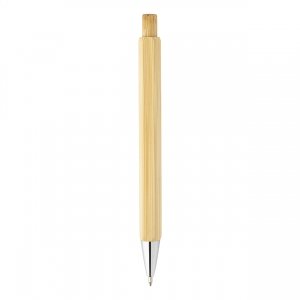 Artikel-Nr: AND800294Sechseckiger Kugelschreiber aus Bambus mit verchromten Elemtenen. Blauschreibend.
