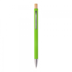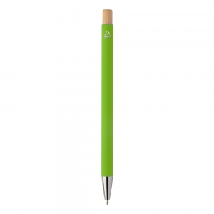 Artikel-Nr: AND808094-07VKugelschreiber aus recyceltem Aluminium mit gummierter Oberfläche, Bambuskdrücker und verchromten Elementen. Mit Spezialbeschichtung für Spiegellasergravur, blauschreibend.