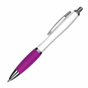 Artikel-Nr: EAG168312TOP PRICE! Kugelschreiber mit weißem Schaft, Metallclip, blauschreibender Großraummine und farbiger Softtouchgriffzone. Ihre Werbung drucken wir rechts vom Clip.
