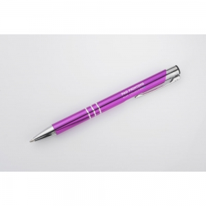 Artikel-Nr: ARD19061-21KALIPSO Druckkugelschreiber aus Metall mit metalisierter Fläche. Verziert mit 3 Metallringen. Das Logo wird auf dem Kugelschreiber graviert.