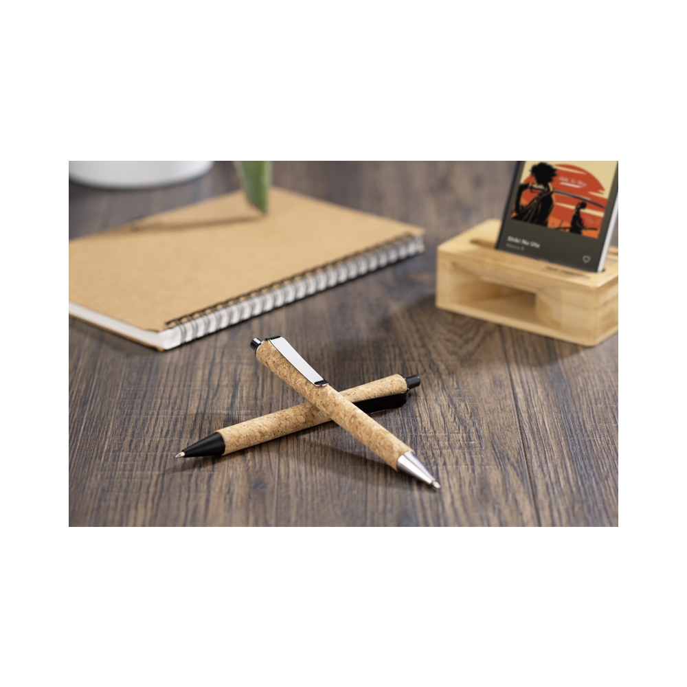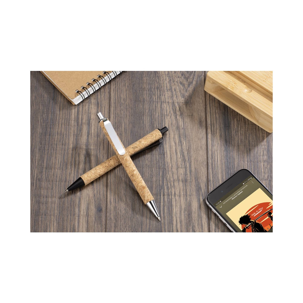 Artikel-Nr: ARD19292-02Der Kugelschreiber KORATO zeichnet sich durch sein einzigartiges Design aus. Die Metallverzierungen verleihen ihm Eleganz und der Naturkork unterstreicht seinen ökologischen Charakter. Es ist nicht nur ein Stift, sondern ein Lebensstil, der auf die Idee des Recyclings und des Umweltschutzes verweist. Die blaue Mine sorgt für ein sanftes und angenehmes, aber dennoch klares und gut lesbares Schreibgefühl. Der KORATO Stift ist das ideale Werkzeug für alle, die Komfort und Schreibqualität schätzen.
