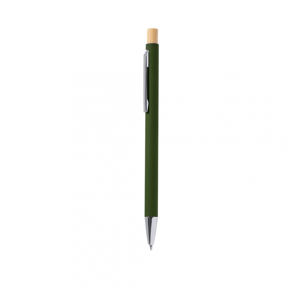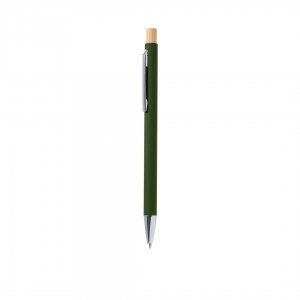 Artikel-Nr: KTO21785004000Kugelschreiber mit Druckmechanismus aus recyceltem Aluminium. Druckknopf aus Bambus und gummierter Oberfläche. Metallclip und recyclinggeprüftes Aluminium-Label auf der Oberseite des Kugelschreibers, in blauer Tinte. Recyceltes Aluminium ist ein Material mit nahezu unbegrenzten Recyclingmöglichkeiten, ohne dabei seine ursprünglichen Eigenschaften zu verlieren und bei geringerem Energieverbrauch in diesem Prozess. GRS-Zertifizierung (Global Recycled Standard), die den Recyclingursprung des verwendeten Materials zur Herstellung des Produkts gewährleistet. Materialien wie Bambus fördern die Nutzung natürlicher Rohstoffe und reduzieren die Schadstoffemissionen. Zudem stammt Bambus von einer widerstandsfähigen und vielseitigen Pflanze, die schnell wächst und sich regeneriert und somit eine hervorragende Alternative zur herkömmlichen Holzverwendung darstellt. Jumbo-Nachfüllung.