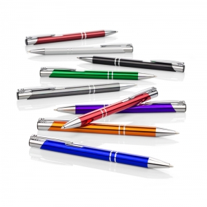 Artikel-Nr: ARD19600-03Der Kugelschreiber KOSMOS ist eine kostengünstige Version des bestens bekannten Kugelschreibermodells. Metallkugelschreiber mit bewährter Qualität zu einem noch besseren Preis dank des Einsatzes kosteneffizienterer Produktionstechnologien. Das Aluminiumgehäuse des Kugelschreiber ist mit zwei Ringen. verziert.