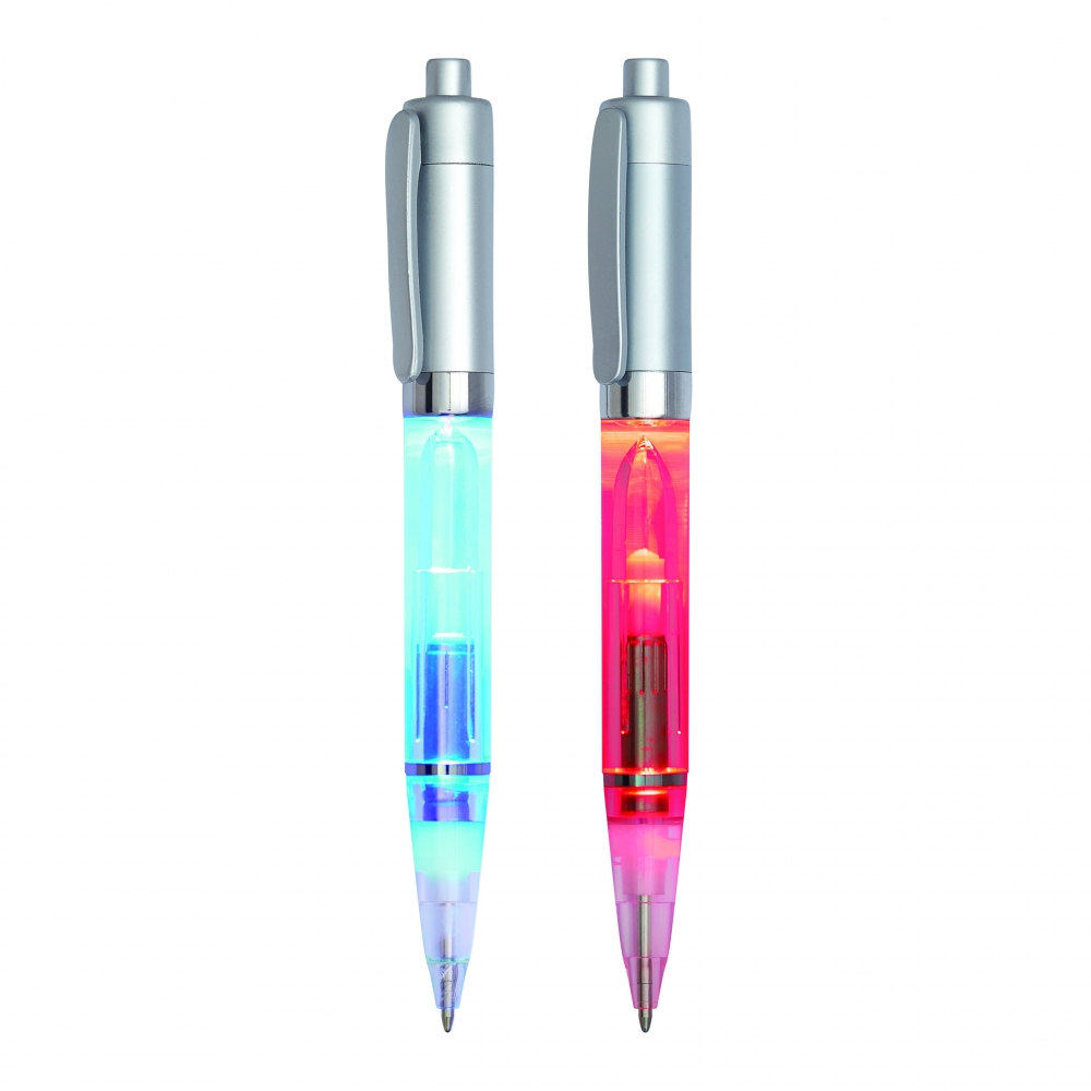 Artikel-Nr: INP58-1100462Kugelschreiber LUXOGRAPH LIGHT: mit LED-Lämpchen – wird über Druckmechanismus aktiviert, Stift leuchtet farbig, blauschreibend, aus Kunststoff