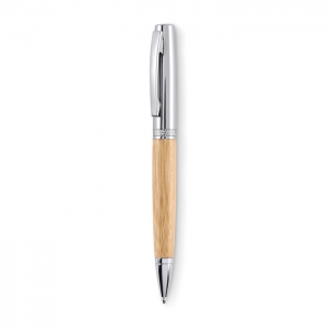 Artikel-Nr: OCBMO2511-40Drehkugelschreiber aus Metall mit Schaft in Bambus-Finish. Lieferung in einer Hülse aus Bambus mit Kappe aus Aluminium. Blaue Tinte.
