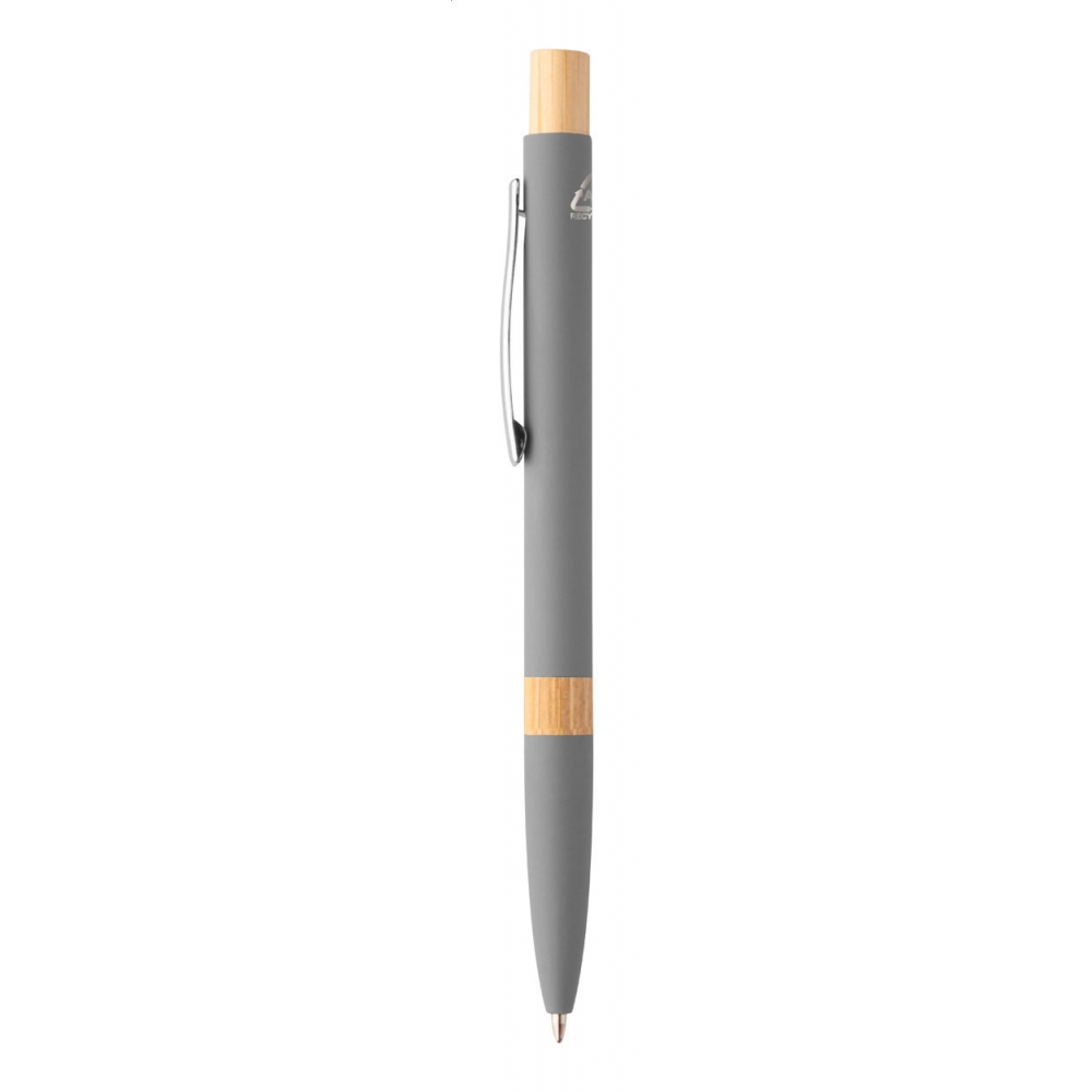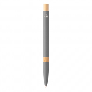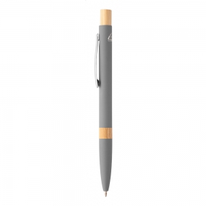 Artikel-Nr: AND809618-80Kugelschreiber aus recyceltem Aluminium mit Bambus-Elementen, gummierter Oberfläche und verchromten Clip. Mit Spezialbeschichtung für Spiegelgravuren. Blauschreibend.