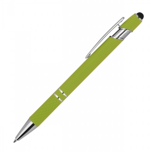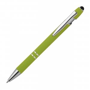 Artikel-Nr: MCM1368929Kugelschreiber aus Aluminium mit silbernen Applikationen, blau schreibender Großraummine, Touchfunktion und gemusterter Griffzone. Ihre Werbung wird rechts vom Clip graviert.