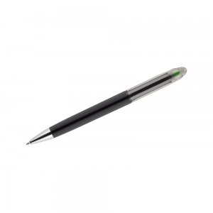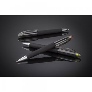Artikel-Nr: ARD19667-13HILIG ist ein nützliches 2-in-1-Gadget. Oben auf einem traditionellen Kugelschreiber befindet sich ein bunter Textmarker. Der Körper des Kugelschreibers ist mit einer Gummibeschichtung bedeckt und fühlt sich sehr angenehm an. Stift mit Drehmechanismus, blauschreibend