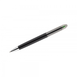 Artikel-Nr: ARD19667-13HILIG ist ein nützliches 2-in-1-Gadget. Oben auf einem traditionellen Kugelschreiber befindet sich ein bunter Textmarker. Der Körper des Kugelschreibers ist mit einer Gummibeschichtung bedeckt und fühlt sich sehr angenehm an. Stift mit Drehmechanismus, blauschreibend