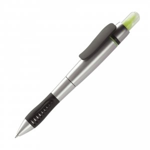 Artikel-Nr: ART81252N05412 in 1: Blauschreibender Kugelschreiber mit integriertem Textmarker in der Kappe. Schaft silber, Manschette schwarz.