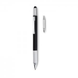 Artikel-Nr: OCBMO8679-03Drehkugelschreiber mit Stylus, aufgedrucktem Lineal und Mini-Wasserwaage (Gimmick), sowie integriertem Kreuz- und Schlitzschraubenzieher. Schwarze Tinte.
