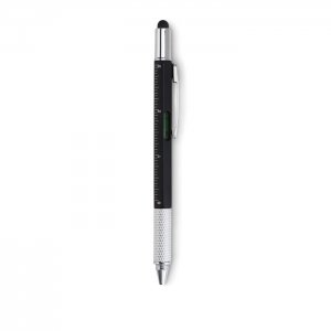 Artikel-Nr: OCBMO8679-03Drehkugelschreiber mit Stylus, aufgedrucktem Lineal und Mini-Wasserwaage (Gimmick), sowie integriertem Kreuz- und Schlitzschraubenzieher. Schwarze Tinte.
