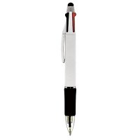 Artikel-Nr: 3261198630004-in-1 Multifunktions-Kugelschreiber mit Stylus am oberen Ende. Vier Tintenfarben. Farbiger Schaft, heller Ring und helle Spitze sowie schwarze Griffzone.