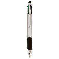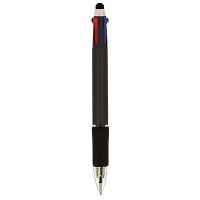 Artikel-Nr: 3261198630004-in-1 Multifunktions-Kugelschreiber mit Stylus am oberen Ende. Vier Tintenfarben. Farbiger Schaft, heller Ring und helle Spitze sowie schwarze Griffzone.