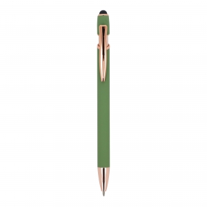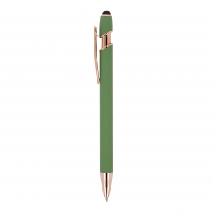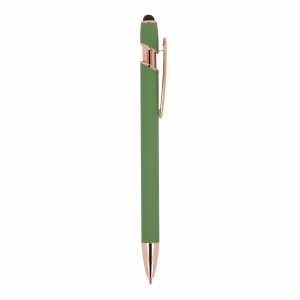 Artikel-Nr: ART87783N0043Kugelschreiber aus roségoldenem Aluminium mit eleganter Soft-Touch-Oberfläche und Stylus. Mit massivem Metallclip. Schreibfarbe: blau.