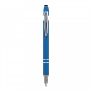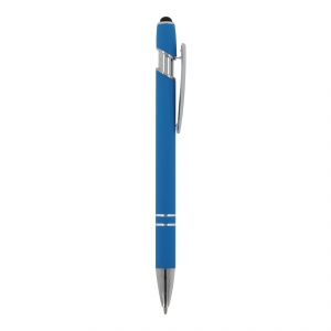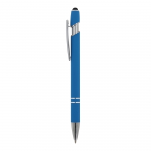 Artikel-Nr: ART87782N0012Kugelschreiber aus Aluminium mit elegantem Soft-Touch-Finish und Stylus. Mit massivem Metallclip. Schreibfarbe: blau.