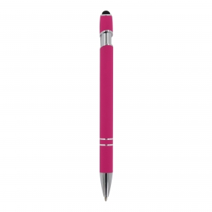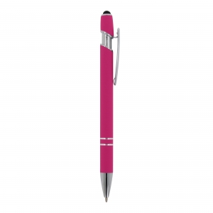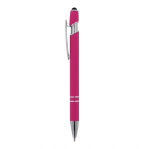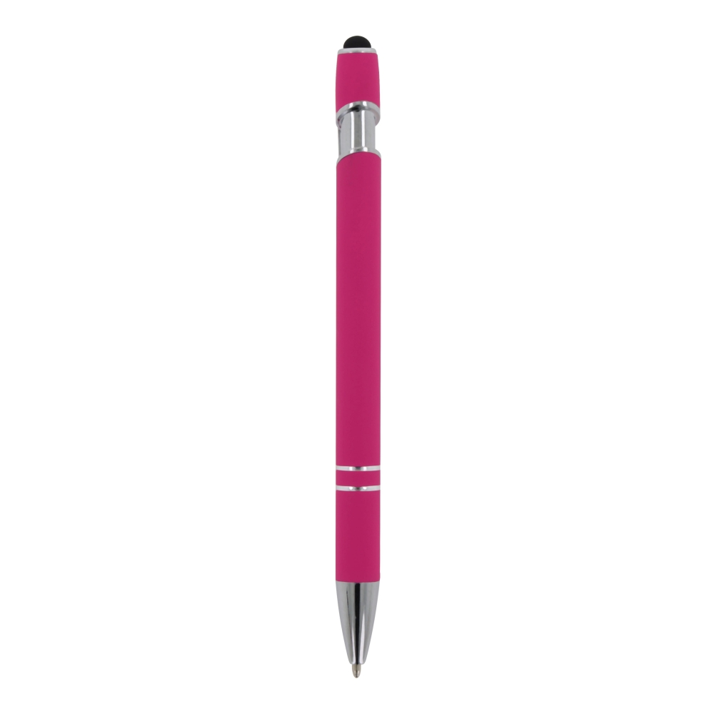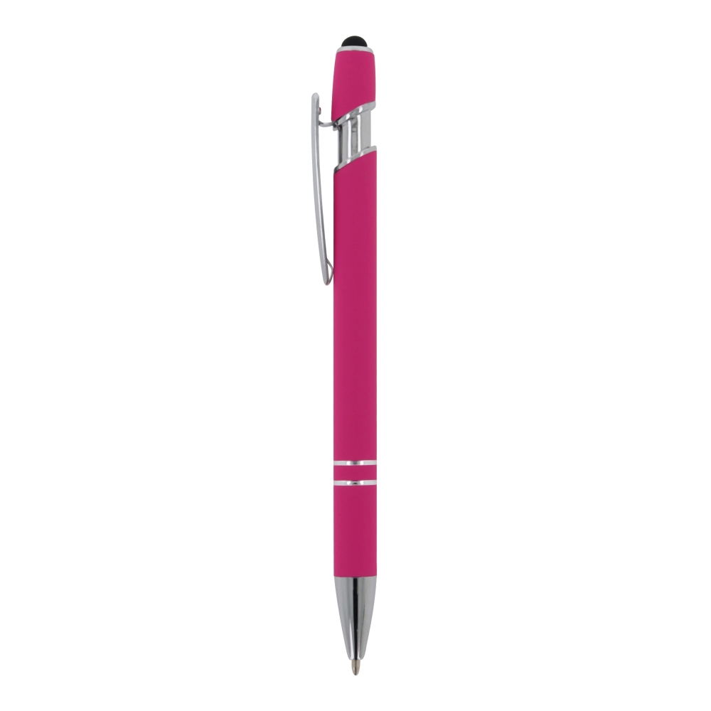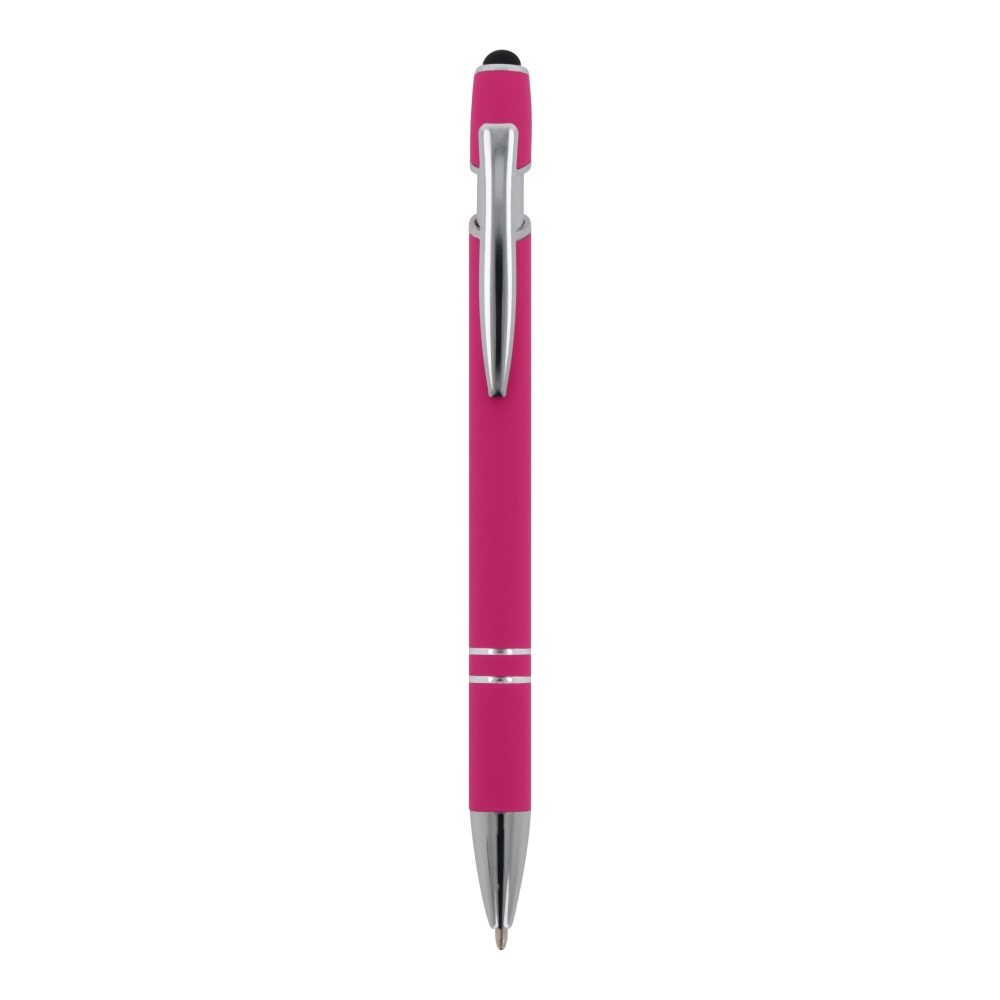 Artikel-Nr: ART87782N0076Kugelschreiber aus Aluminium mit elegantem Soft-Touch-Finish und Stylus. Mit massivem Metallclip. Schreibfarbe: blau.