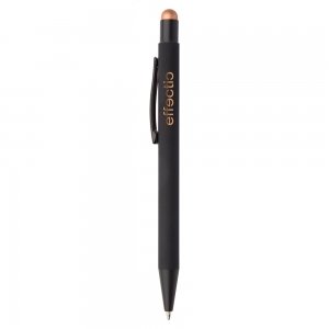 Artikel-Nr: AND845170-97Aluminium-Kugelschreiber mit Touchpen und gummierter Oberfläche und Spezialbeschichtung für eine Farbgravur (Gravurfarbe abgestimmt mit Stylus), blauschreibend.