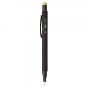 Artikel-Nr: AND845170-07Aluminium-Kugelschreiber mit Touchpen und gummierter Oberfläche und Spezialbeschichtung für eine Farbgravur (Gravurfarbe abgestimmt mit Stylus), blauschreibend.